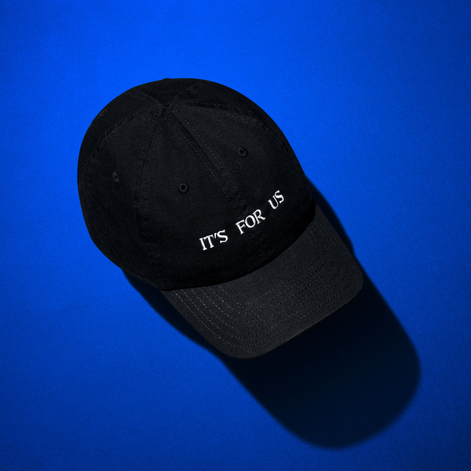 White stitched “It’s for us” on the front and our Berne key stitched to the left backside