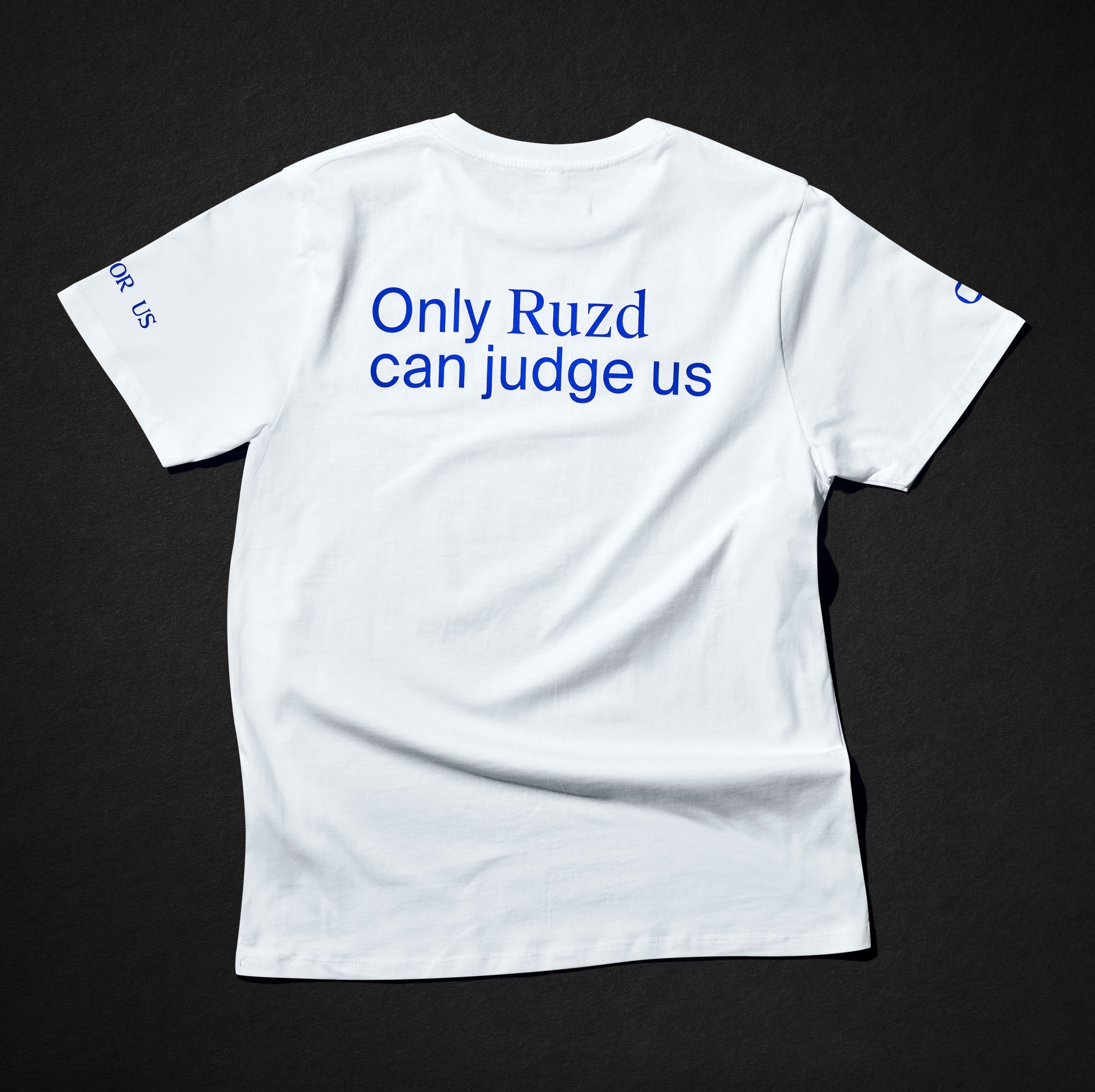 Big "Only Ruzd can judge us" print on the back
