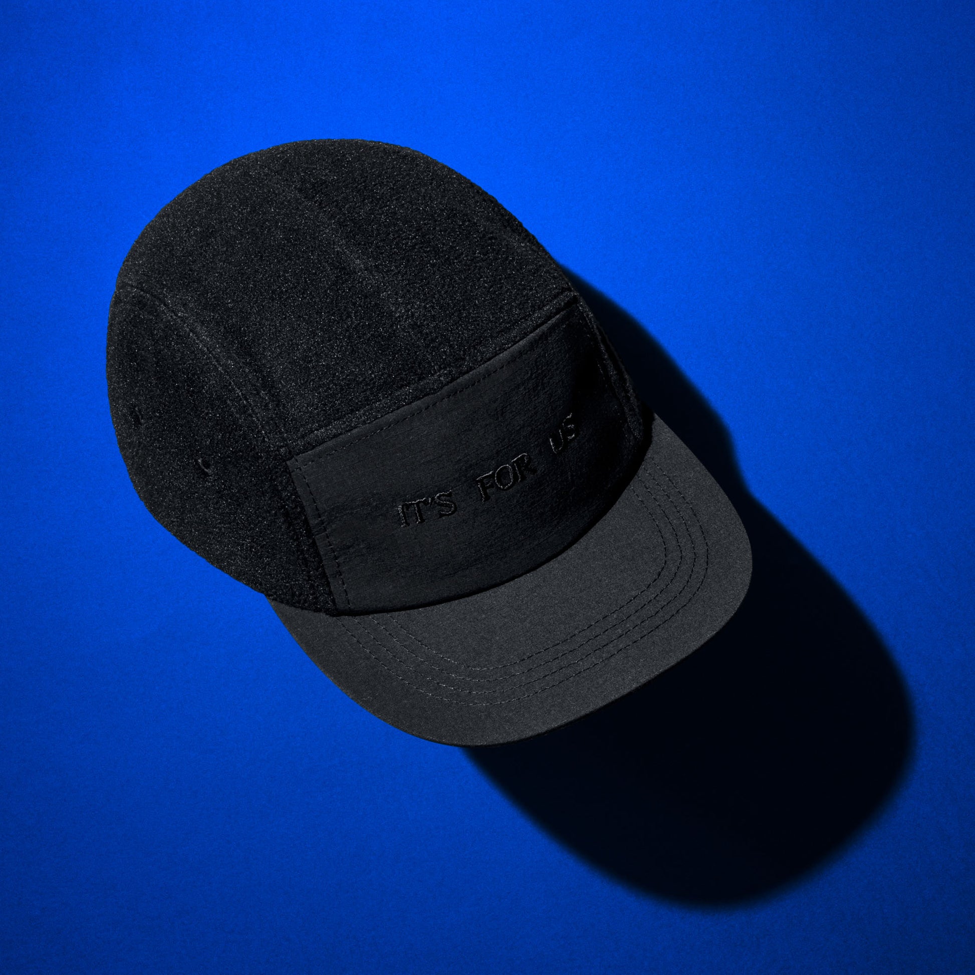 Our wintery 5-panel cap is made of recycled fleece to keep your head warm and comes with a tone-in-tone black stitched "It’s for us" on the front panel and the Berne key logo stitched on the left backside.